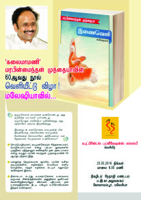 ஏன்னுடைய 60ஆவது புத்தகம் 23.05.2016 அன்று மலேசியாவில் வெளியிடப்படுகிறது. கவிதை வாழ்க்கை வரலாறு ஆன்மீகம் இலக்கியம் மொழிபெயர்ப்பு திறனாய்வு,சுய முன்னேற்றம் உட்பட பல்வேறு துறைகளில் இதுவரை 59 நூல்கள் வெளிவந்துள்ளன. 60 ஆவது புத்தகமாக…